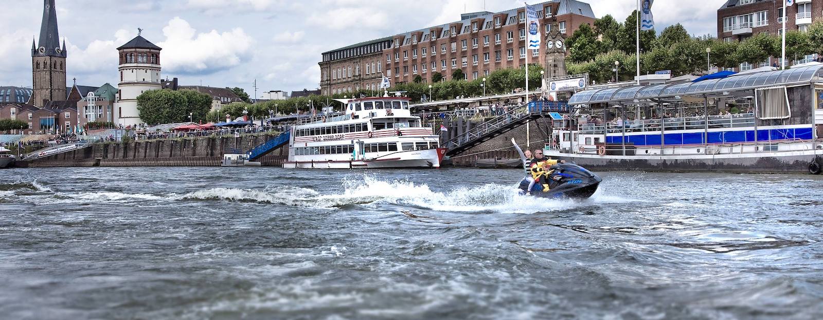 Die Weisse Flotte bietet bei Abfahrten ab Düsseldorf oder Kaiserswerth Panoramafahrten sowie Linienfahrten ab/an Düsseldorf und Kaiserswerth und Tagesfahrten an. Im Rahmen dieser Fahrten wird jeweils die Möglichkeit eines Zu- oder Ausstiegs angeboten.