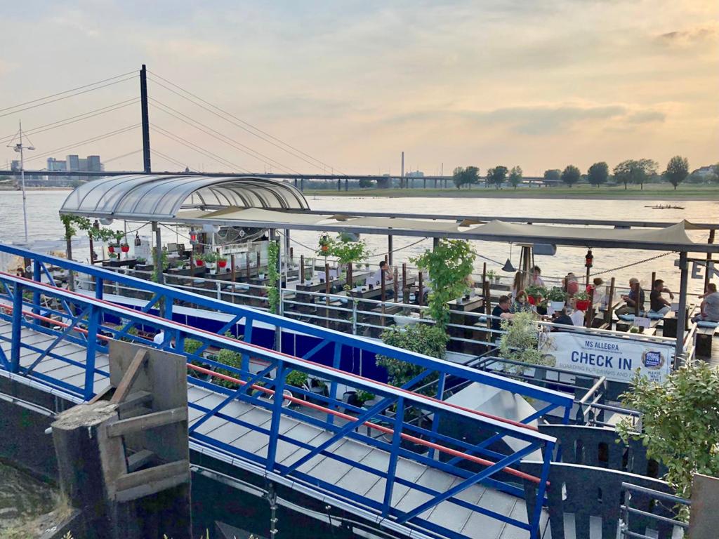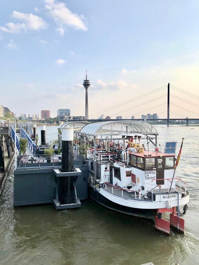 Auf dem oberen Deck sitzen, den Rhein vorbei fließen sehen, die schicke Oberkasseler Rheinfront im Blick und die schönsten Sonneruntergänge der Landeshauptstadt erleben. Das ist unsere MS Allegra!