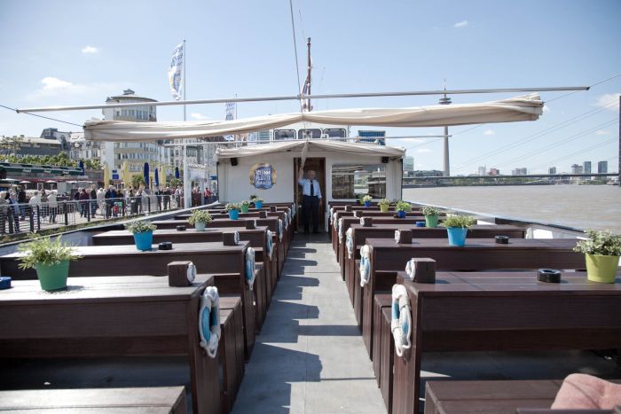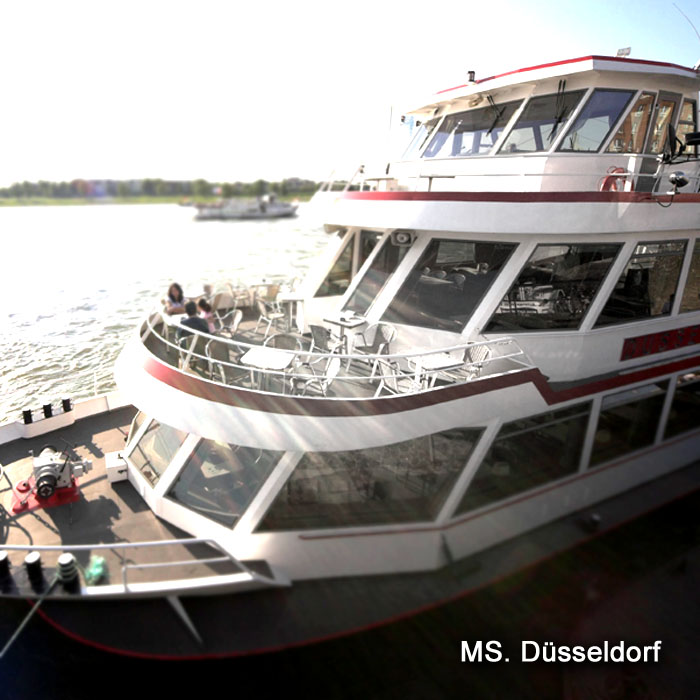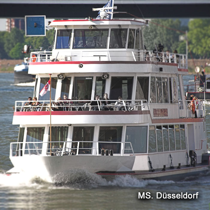 Die MS Düsseldorf ist unser größtes Ausflugsschiff und kann bis zu 250 Personen befördern. Das Unterdeck bietet eine große Tanzfläche und eine komfortable Bar. Das große Mitteldeck bietet bis zu 150 Sitzplätze, welche flexibel je nach Bedarf gestellt werden können. Ein großzügiges Freideck steht selbstverständlich auch zur Verfügung.